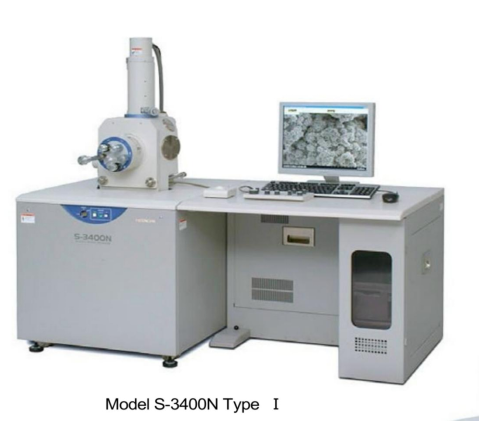 S-3400N扫描电子显微镜是日立公司产品。真空系统采用分子泵,抽真空速度快,可放大倍数5X~100000 X;二次电子像的分辨率在30KV时达到3.0nm,在3KV时达到10nm;背反射电子像的分辨率在30KV时达到4.0nm;最大的样品尺寸是200mm。本配备有能谱仪,能谱的分析工作距离为10 mm,分析精度达到千分之一。主要用于对各种类型的样品,如金属类样品,非金属类样品,生物样品,矿石产品以及电子元器件产品等表面微观形貌和成分进行有效分析。