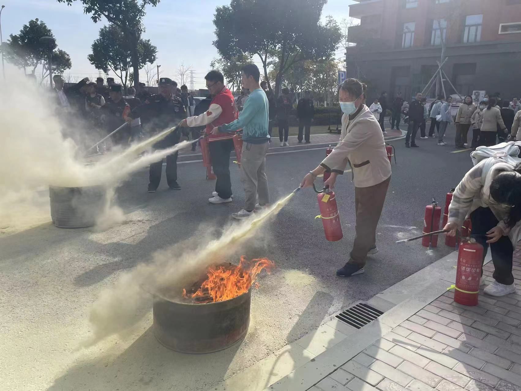接着,大家分批分组有序地进行了现场灭火操作。