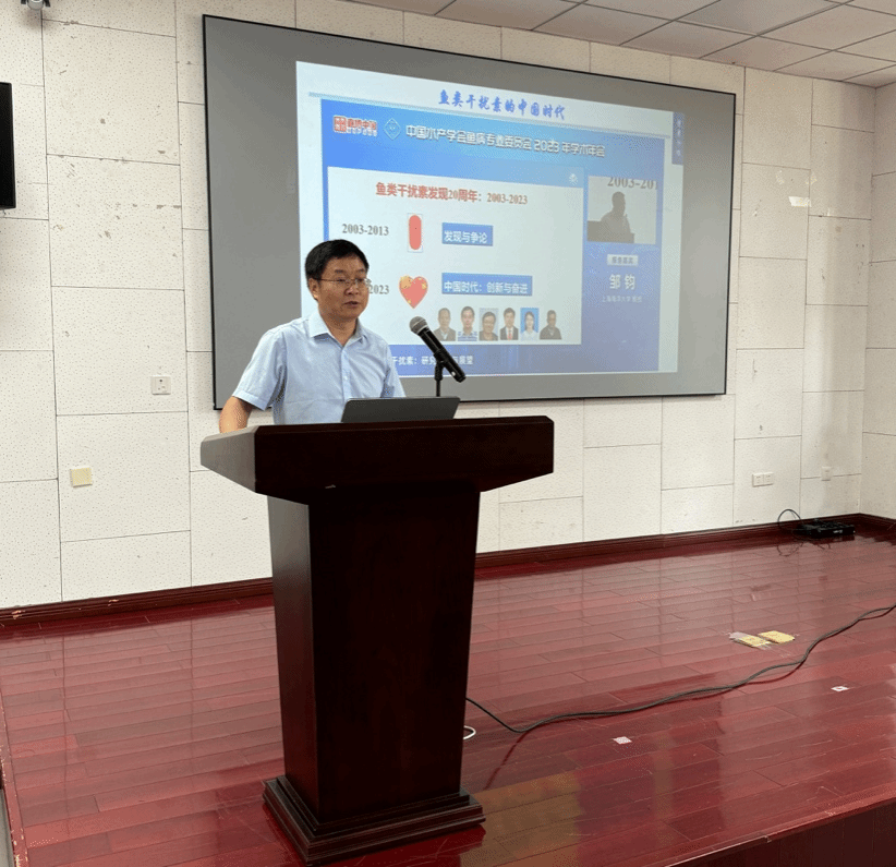 苏建国教授首先回顾了国内外关于鱼类干扰素研究的探索历程,随后介绍了其在干扰素抗菌领域所取得的前沿科研成果:鱼类干扰素IFN1和IFN-γ具有显著的直接杀菌活性;IFN1通过其特异性受体CRFB1/CRFB2/CRFB5激活补体C3.3系统,C3.3不仅广谱的聚集细菌,还可以通过补体受体1(CR1)促进血栓细胞吞噬作用,进而增强鱼体抵抗细菌感染;此外,其团队将IFN1抗菌活性区域(I20)制备功能饲料,不仅促进鱼体生长也显著提高鱼体抗病力。报告不仅突出了干扰素在鱼类抗菌感染中的重要作用,也强调了IFN1衍生物I20可作为饲料添加剂应用于水产养殖业的潜力。