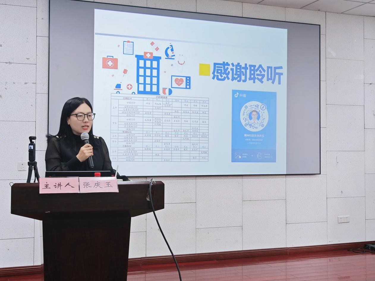 附属第一医院身心科医生张庆玉作为主讲人,学院党委副书记张乐、心理联络员、学生等180余人参加了本场讲座。