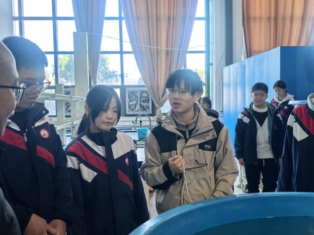 潜心科研的教授们一生与海洋同行,在几十年如一日的付出下不断攻克水产养殖繁殖率低、不易存活等难题的故事,启迪同学们坚定信念,为梦想而坚持。研究生党员贾同鹏以《海底大探险》为题,从自己的学科研究方出发,介绍了习近平总书记提出的“大食物观”、建设“海洋牧场”及“蓝色粮仓”等目标和方向,激励中学生能以此为梦想做好水产动物的医生。本科生第二党支部党员黄文莲开展微课宣讲《从一方鱼塘到万亩汪洋》,以自身从中学到大学再到保研清华的经历,激励中学生专注当下、把握现在。