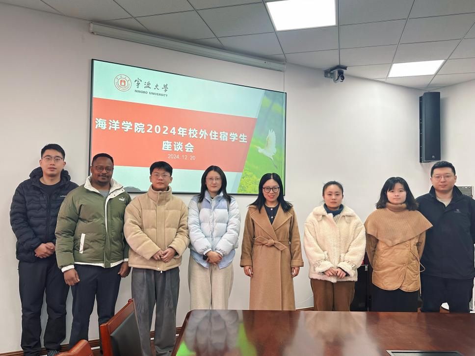 在竺银康楼303会议室举行校外住宿学生座谈会。学院党委副书记张乐、学工办辅导员与4位校外住宿学生参会。