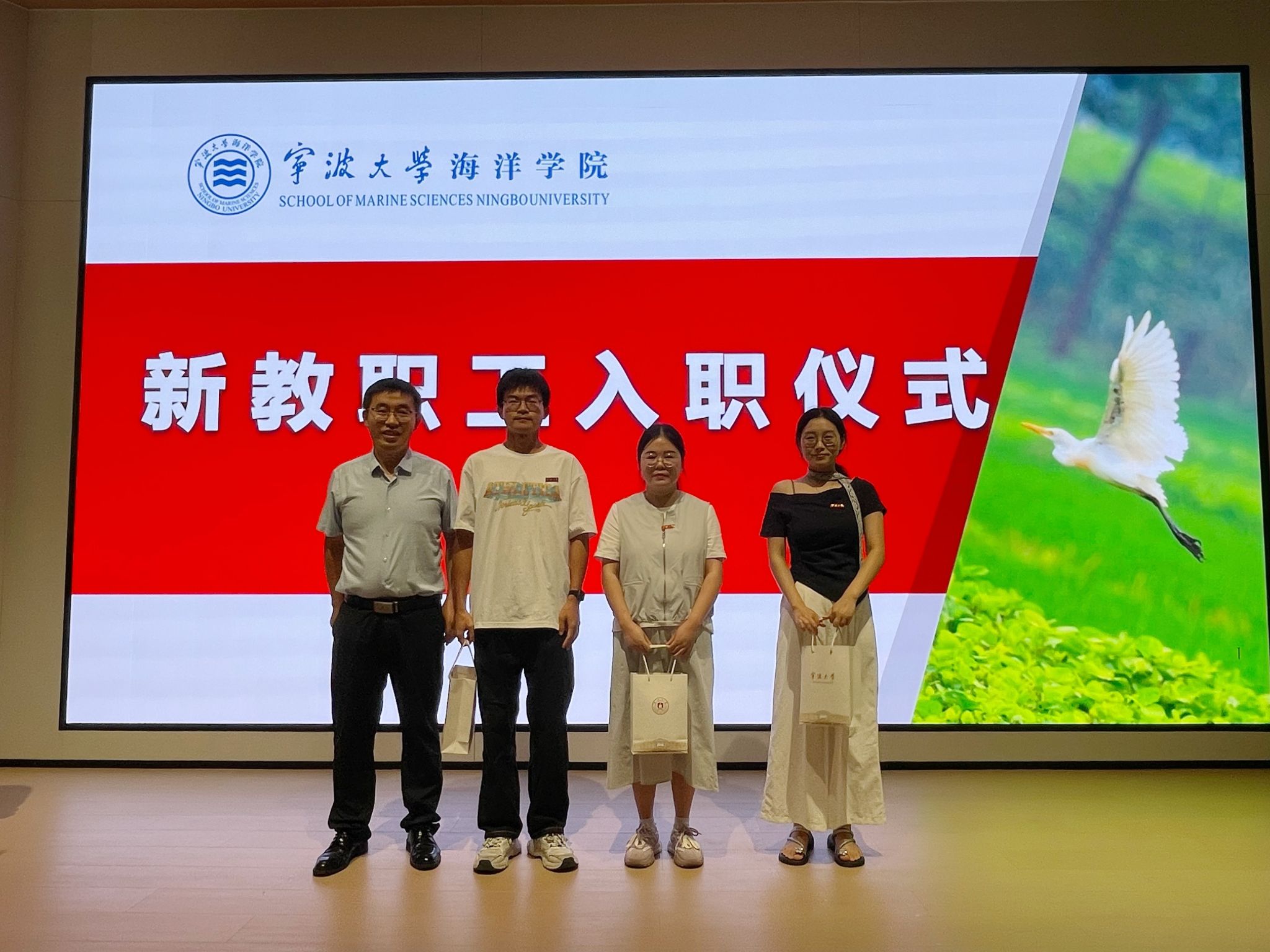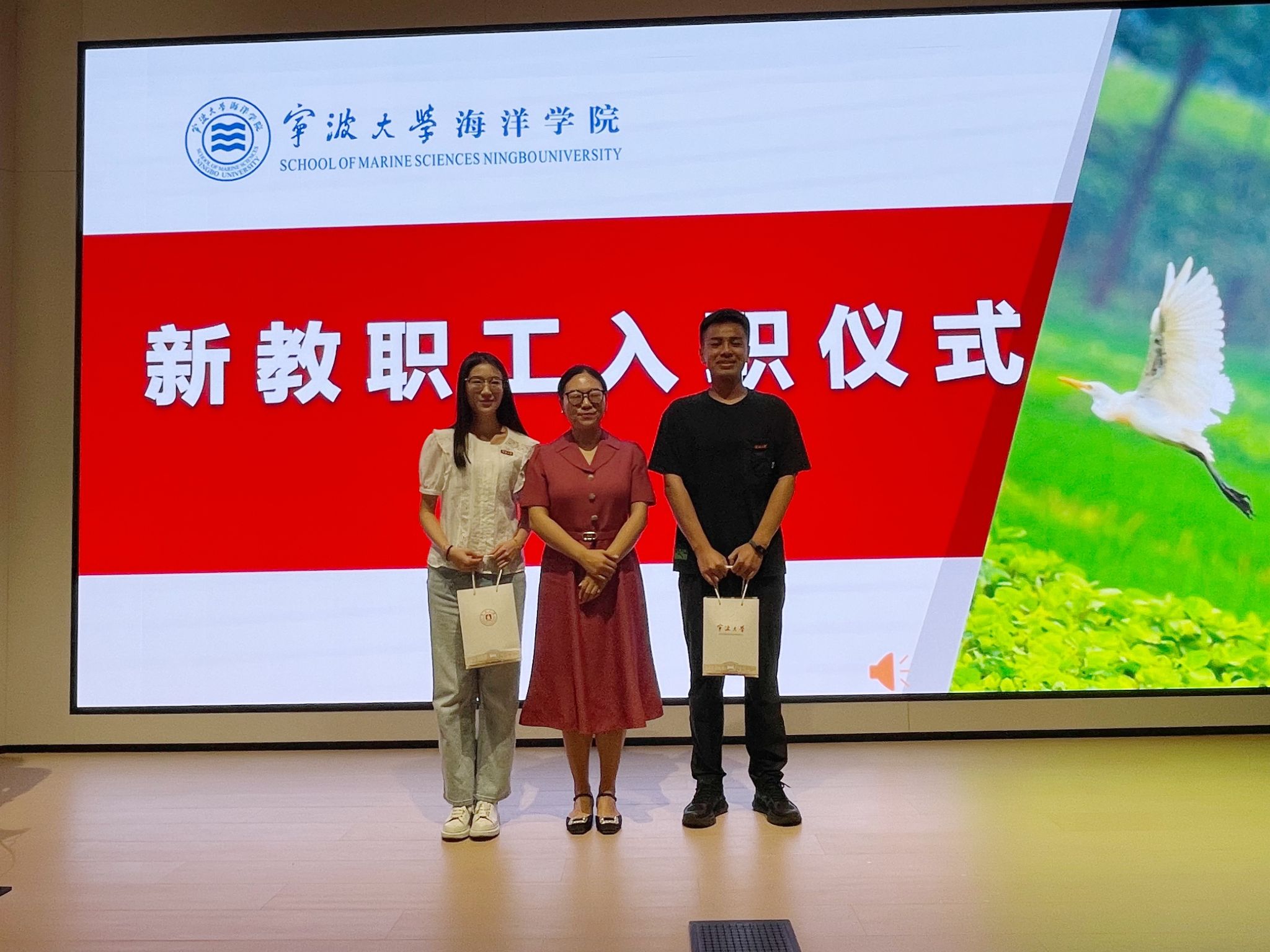 。为迎接新教职工的到来,大会隆重举行新教职工入职仪式。在全场老师的热烈掌声中,11名新“海洋人”逐一亮相。学院领导为他们佩戴蘑菇视频