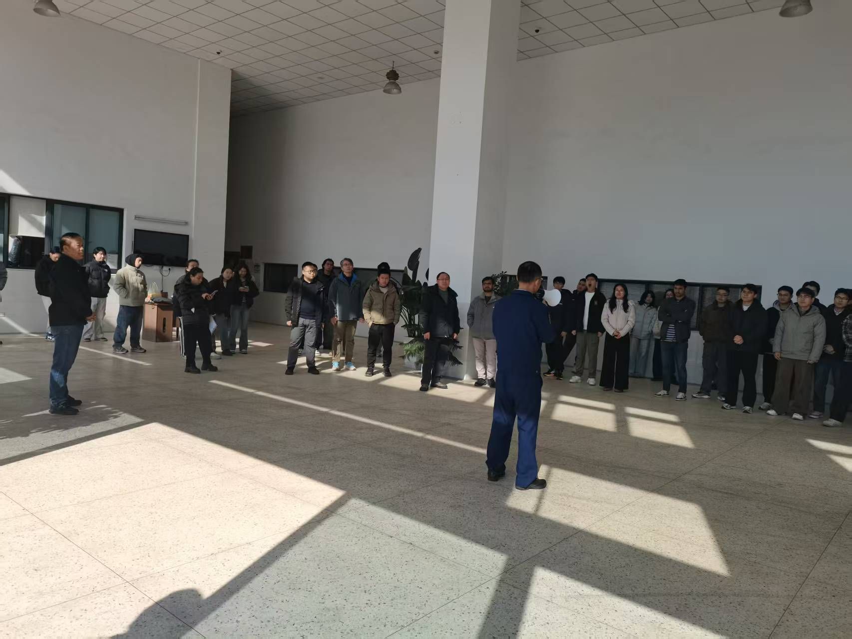 10 时 45 分,应急疏散演练正式启动。演练前,工作人员再次明确流程与注意事项,避免引发恐慌。随着烟雾模拟器启动,某实验室模拟起火点冒出烟雾,第一发现人立即高声呼救并按下手动火灾报警按钮,现场实验人员迅速停止操作,关闭气、电、热源。灭火行动组与实验室师生就近取用二氧化碳灭火器开展初期模拟扑救,疏散引导组引导全体人员用湿毛巾捂住口鼻,低姿沿预定疏散路线有序撤离。11 时许,所有人员安全抵达楼前空地,疏散引导组逐室清查有无滞留人员,安全警戒组封锁 “火场” 周边区域,医疗救护组随时待命处置突发情况,整个疏散过程紧张有序、衔接顺畅。