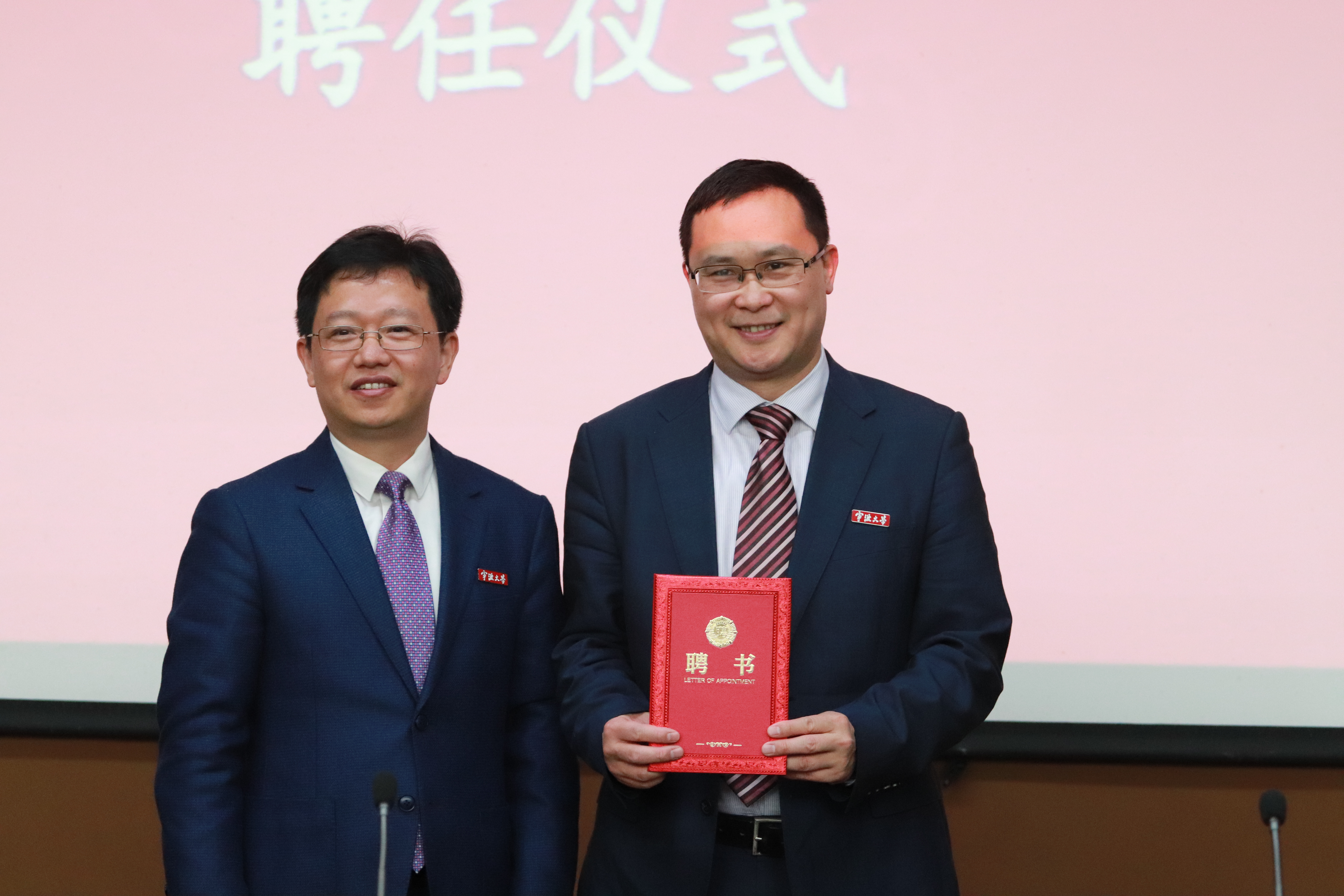 副校长邵千钧出席并为易敢峰博士授聘书及佩戴校徽。