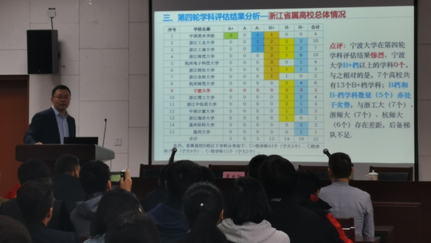 报告会上戴院长介绍了学科评估工作概览,并就浙江省属高校的总体情况针对第四轮学科评估结果进行了分析。在对比分析过程中,戴院长向教师们指出了蘑菇视频