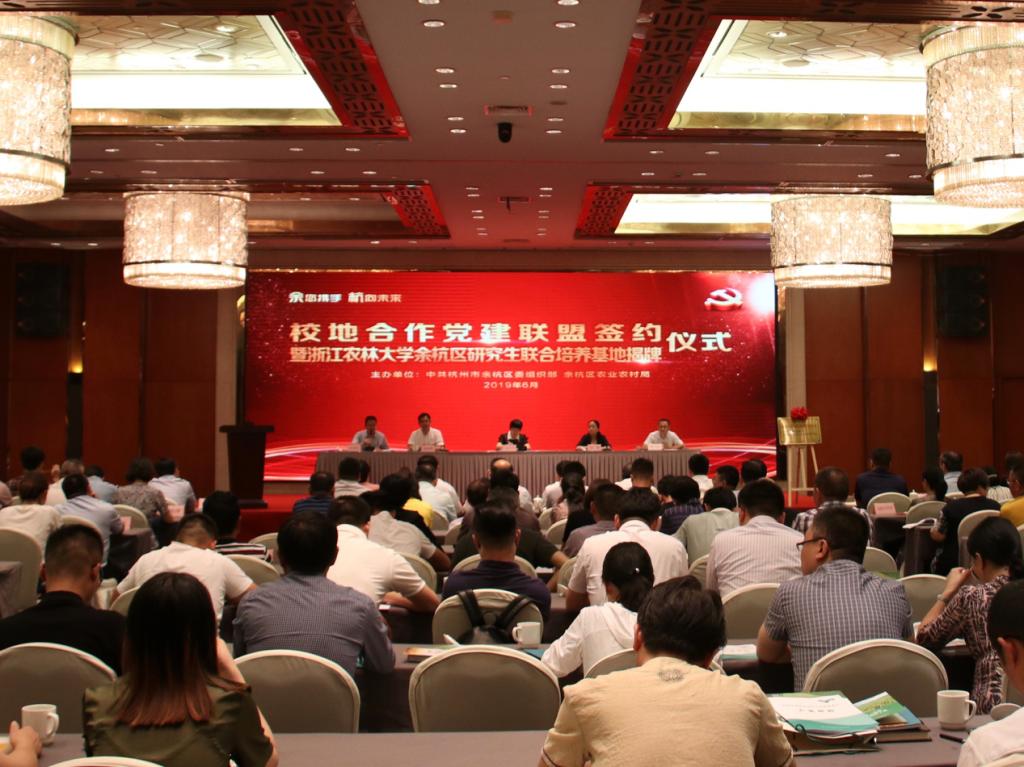 党委与余杭区农业农村局党委签定校地合作党建联盟合作书,正式建立起校地党建互动合作关系,为推动高校人才流入村社,加快农村科学技术推广,提升农业骨干人员培养搭建起平台。