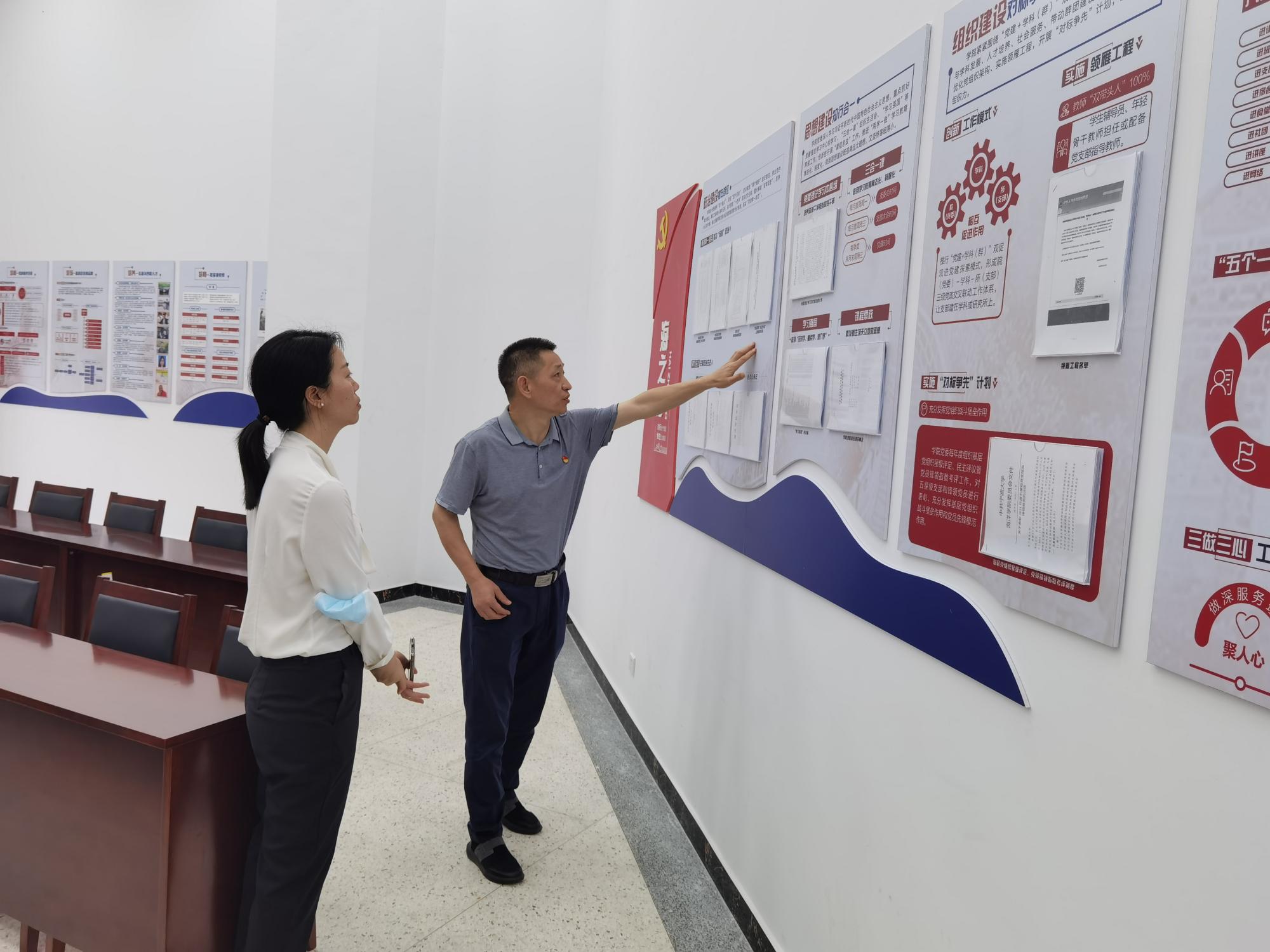 党委蔡真亮书记、副书记谢冰蕾进行了接待。来访客人走访了学院“全国党建工作标杆院系”建设示范点,蔡真亮就学院党委如何聚焦中心工作、“全国党建工作标杆院系”创建工作开展的基本情况、特色成效等内容进行了分享介绍,重点介绍了近年来学院在构建“党建+学科(群)”双促双进的“五五五”工作模式中的路径探索和成效等情况。