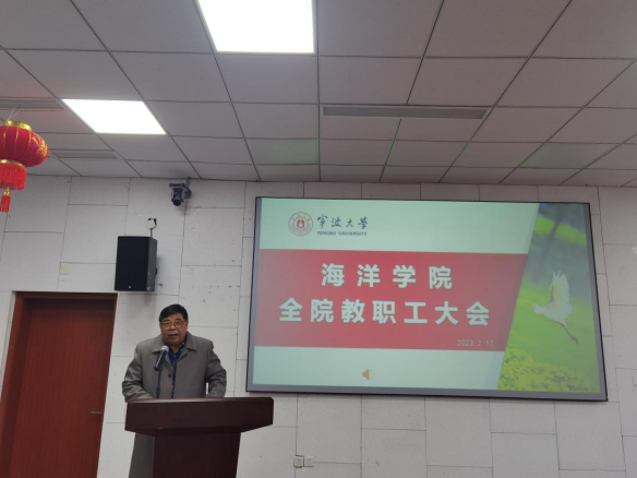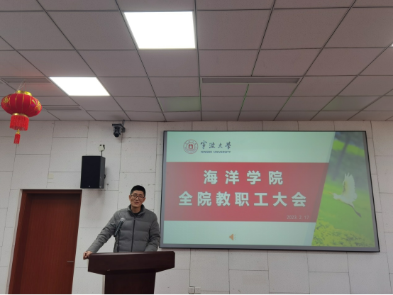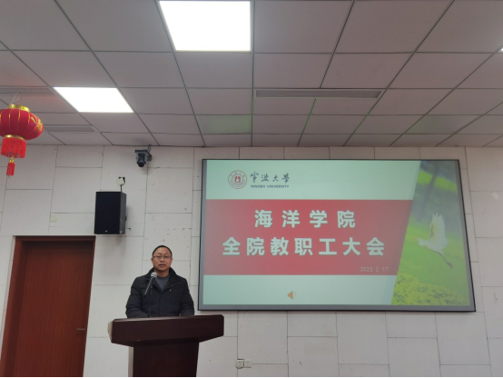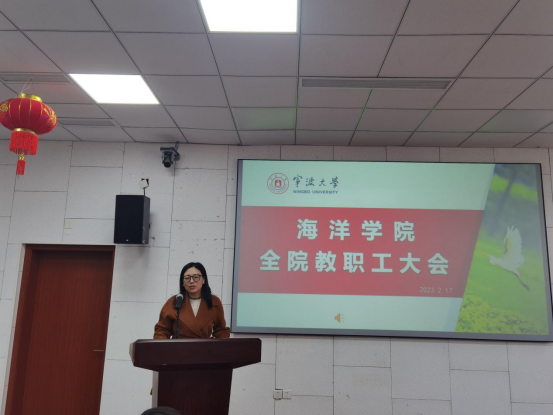 2023年新学期全体教职工大会在东楼报告厅召开。会议由学院党委书记邵丽主持。