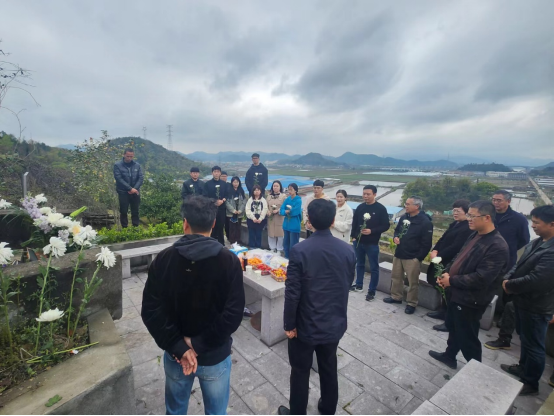 为弘扬英烈精神,坚定理想信念,3月31日,在陈乌皮烈士墓前,研究院全体师生怀着崇敬的心情列队肃立,聆听了亲历者那段刻骨铭心的历程,并依次并向烈士墓敬献鲜花;随后,全体人员向革命烈士三鞠躬并默哀致敬;最后,面向先烈墓碑,全体党员庄重地举起右臂,重温了入党誓词。