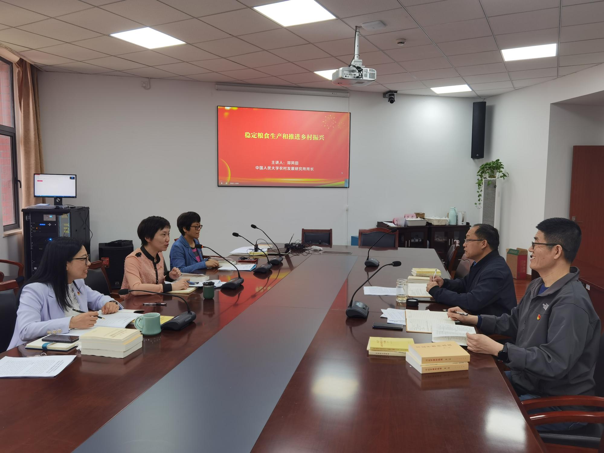 学院党委班子先后学习了《习近平新时代中国特色社会主义思想专题摘编》第六部分——“实施科教兴国战略,强化现代化建设人才支撑”和习近平总书记4月10日至13日广东考察重要讲话精神,在线收看了中国人民大学农村发展研究所所长郑凤田题为“稳定粮食生产和推进乡村振兴”的辅导报告。