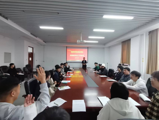 在南楼401会议室召开实验室安全工作会议,全体实验室学生安全员参加了会议。