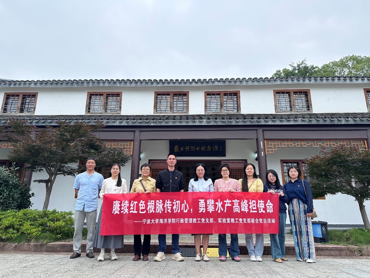 行政管理教工党支部与教辅党支部联合组织党员赴奉化区卓兰芳纪念馆、裘古怀烈士故居及宁波市海洋渔业研究院横码基地开展主题党日活动,通过“红色洗礼+科技赋能”的创新形式,推动党性教育与科技创新实践深度融合。