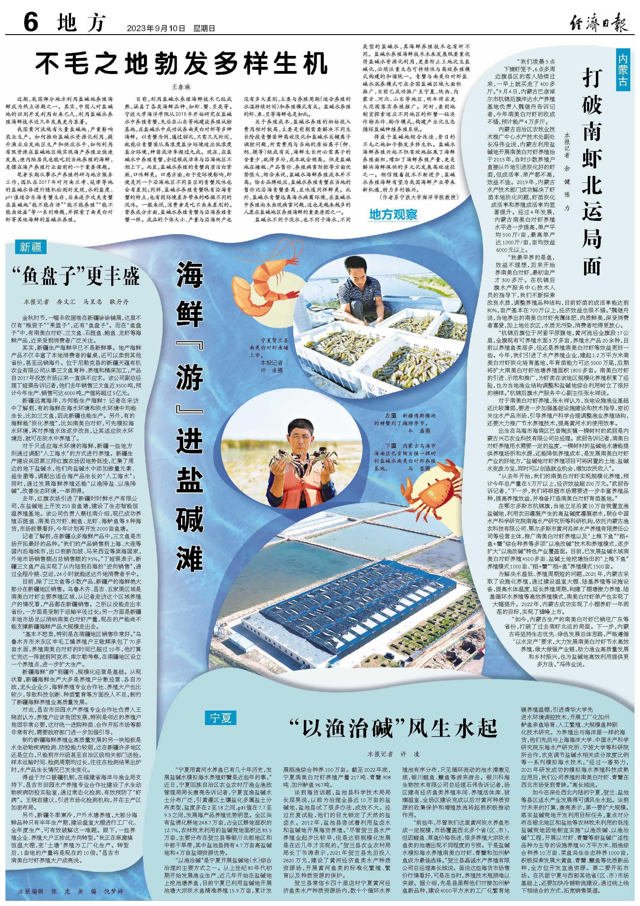 近期,我国部分地方利用盐碱地养殖海鲜成为热点话题之一。其实,中国人对盐碱地的识别开发利用由来已久,利用盐碱水养殖海鲜技术近几年发展更为显著。