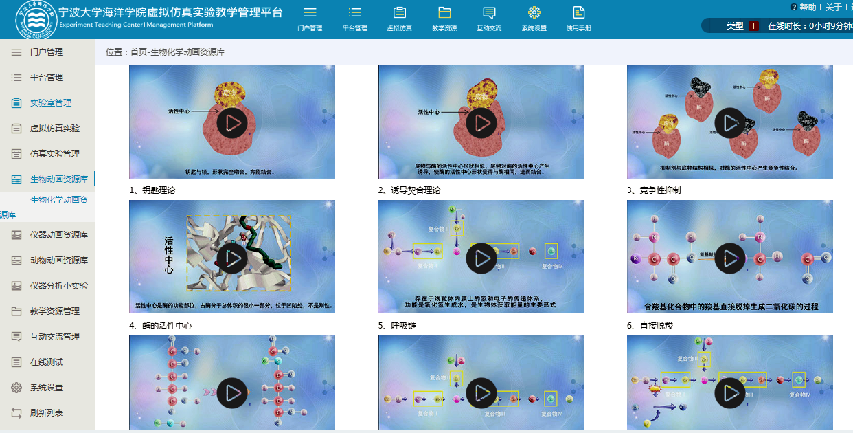 我院“水产养殖国家级实验教学示范中心”及虚拟仿真平台已经启用,示范中心门户网站模块包括:中心简介、申报材料、通知公告、虚拟仿真、教学资源、教研成果、教学管理、实验教学、管理制度、开放共享等栏目。虚拟仿真实验教学管理平台包括虚拟仿真实验的发布和管理;数字化教学资源管理模块;在线测试模块等。