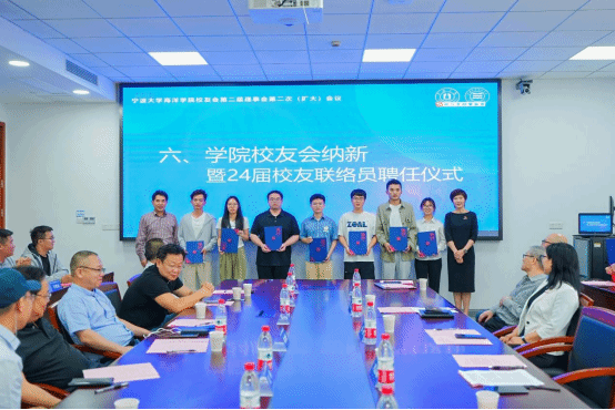 为共同推动校友事业的蓬勃发展,海洋学院校友会与宁波鄞州宁波大学校友联谊会签订战略合作协议,促进校友组织在资源共享、活动开展、业务拓展等方面的深度合作。同时为加强海洋学院校友会的地方影响力,进一步凝聚校友力量,学院特聘院长王春琳为方增冰校友授予宁波分会会旗,学院党委书记邵丽、校友总会秘书长胡宝华为学院24届校友联络员颁发聘书。各位联络员表示,必将以十足的热忱和专注履行好这份特殊的使命,做好校友联络互动工作,实现资源共享,共同成长。