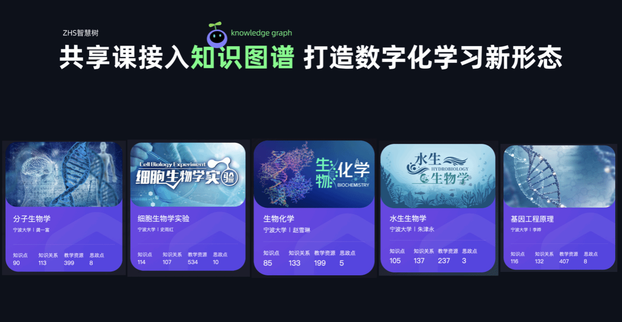 为推进落实高等教育数字化战略行动,我院首批5门知识图谱AI课程接入共享课,上线实现全国共享。海洋学院于2023年9月就率先与智慧树平台积极探索以知识图谱Ai课程为基础的数字化、智能化和个性化的新形态教学转型,目前已建成“分子生物学”、“细胞生物学”、“生物化学”、“水生生物学”和“基因工程原理”五门人工智能赋能的知识图谱Ai课程,为推进教育数字化转型进程和人才培养质量提供了全新的、顶层的、切实可行的实践路径。