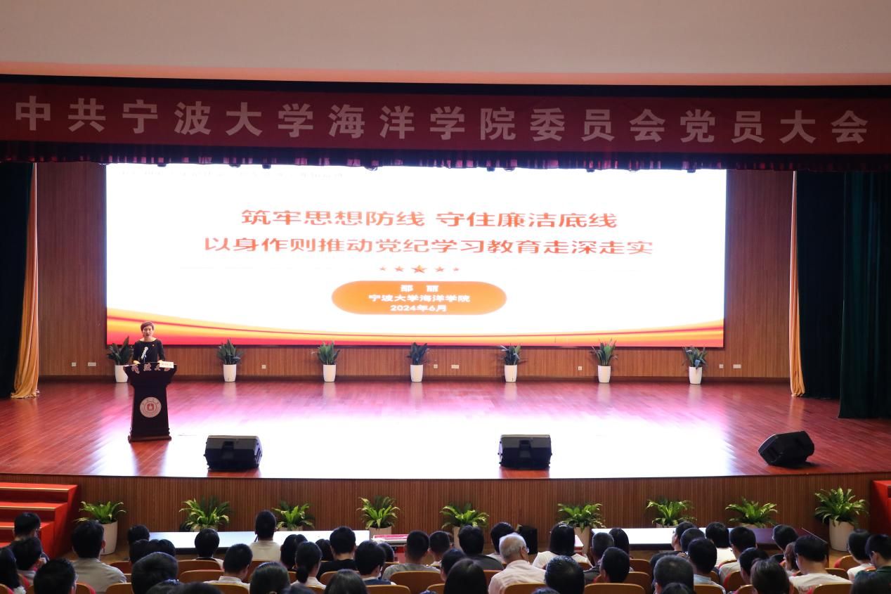 大会伊始,全体与会人员奏唱国歌,在激昂的国歌声中,本次党员大会正式拉开帷幕。邵丽代表中共宁波大学海洋学院第七届委员会向大会作题为《践行初心担使命,凝心聚力再起航》的工作报告。报告从党建引领促进发展、主责主业彰显成效、人才强院夯实根基、风险管控筑牢防线、社会服务更上台阶、廉政建设压实责任、群团建设凝聚力量等七个方面对上届党委工作进行回顾。报告在总结成绩的同时,指出现存的问题不足,明确今后五年的奋斗目标和六项主要任务。