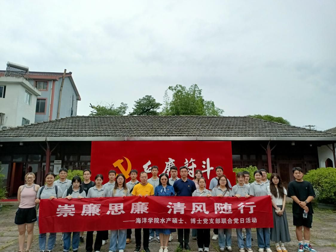 为庆祝中国共产党成立103周年,深入贯彻落实习近平新时代中国特色社会主义思想及党的二十大精神,进一步引导广大党员坚定不移听党话,矢志不渝跟党走,传承党的优良传统,弘扬伟大建党精神,强化党员廉洁意识,6月28日宁波大学海洋学院开展“崇廉思廉,清风随行”主题党日活动。学院党委副书记、纪委书记张乐老师,党建辅导员余杰老师,海洋学院水产硕士、博士党支部党员代表参加活动。