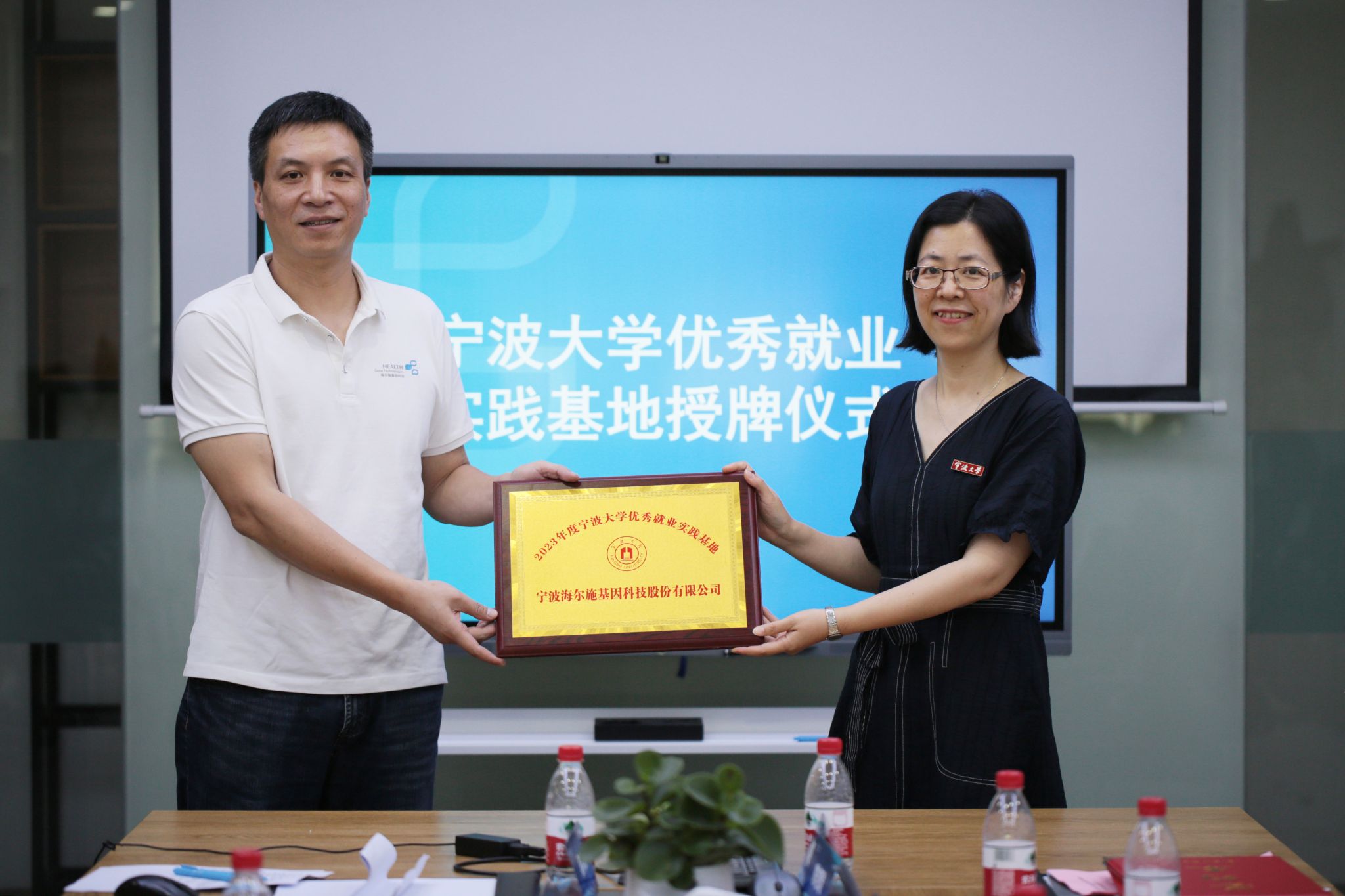 会上,海洋学院特聘院长王春琳与海尔施基因董事长余丁代表双方签订校企合作协议,宁波大学学生发展与服务处处长胡铭向海尔施基因人力资源部总监肖鹏代表双方进行“宁波大学优秀就业实践基地”授牌,2018届海洋学院博士毕业生、海尔施基因技术研发部副经理张迪骏作了校友代表发言,海洋学院主要领导为到场的校友代表赠送了校名纪念品。