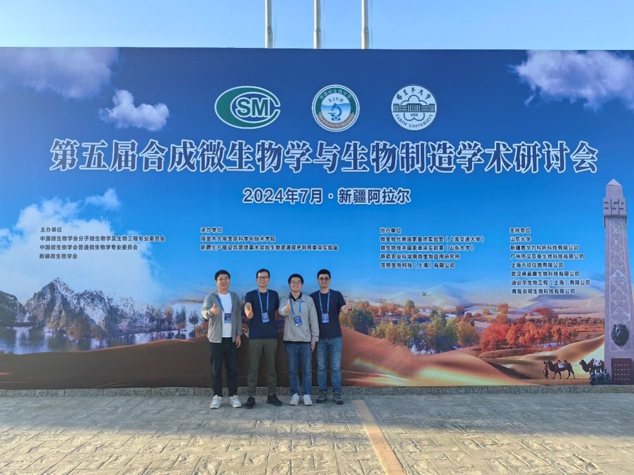 2024年7月19日—23日,宁波大学海洋学院海洋环境微生物与藻类生物技术研究团队负责人姜海波教授带领团队成员陈未中副研究员、王鑫威助理研究员、黄海龙助理研究员至新疆维吾尔自治区阿拉尔市参加第五届合成微生物学与生物制造学术研讨会。合成生物学作为21世纪生物技术领域颠覆性创新和学科交叉融合的前沿,受到各国政府、学术界、产业界高度关注,是未来中国经济转型的新质驱动力。会议期间团队成员与会议承办单位塔里木大学的学者们针对合成生物学前沿:以微藻作为底盘生物进行高附加值产品的开发展开讨论,为阿拉尔市在工业、农业利用微藻开展新型生物制品的研制提供了科学支持和建议。