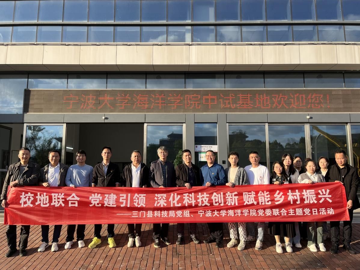 10 月 24 日,三门县科学技术局党组与宁波大学海洋学院党委在梅山校区开展“校地联合,党建引领,深化科技创新,赋能乡村振兴”联合主题党日活动,三门县科学技术局党组成员、海洋学院党委班子成员、教师第三党支部成员和三门青蟹产业技术研究院党员教师代表20余人参加。本次联合主题党日活动是校地双方推进党建联建的重要举措之一,旨在凝聚力量,以党建引领推动科技创新,为乡村振兴注入新动力。