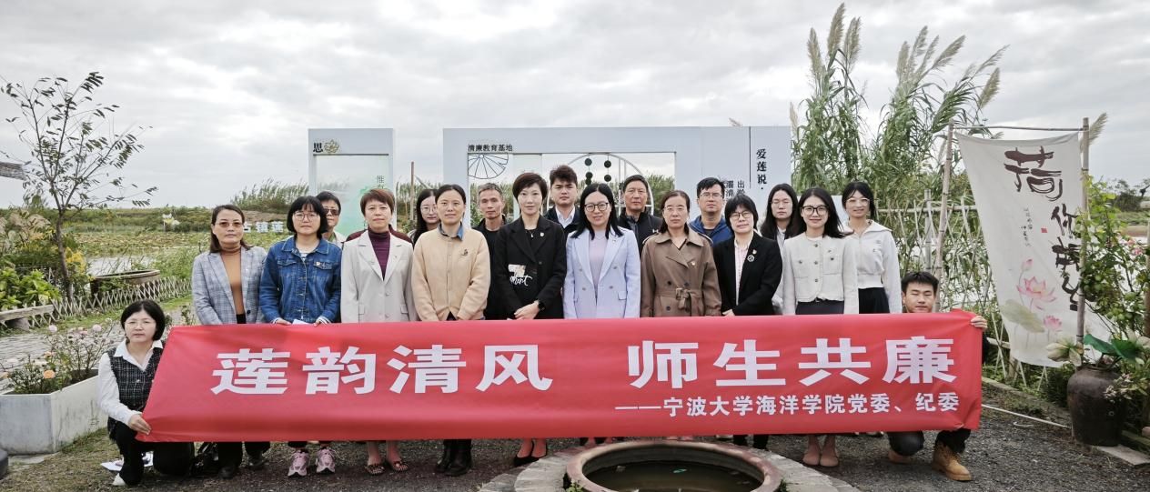 为深入学习贯彻党的二十届三中全会精神,坚定不移推进全面从严治党向纵深延伸,结合学院秋季师德专题教育学习,10月24日,海洋学院师生党员代表赴北仑郭巨清廉基地,开展了“品莲韵清风,铸师德之魂,建清廉支部”主题党日活动。海洋学院党委书记邵丽,党委副书记、纪委书记张乐,实验室教工党支部、行政管理教工党支部、水产硕士、博士党支部党员代表等20余人参加。