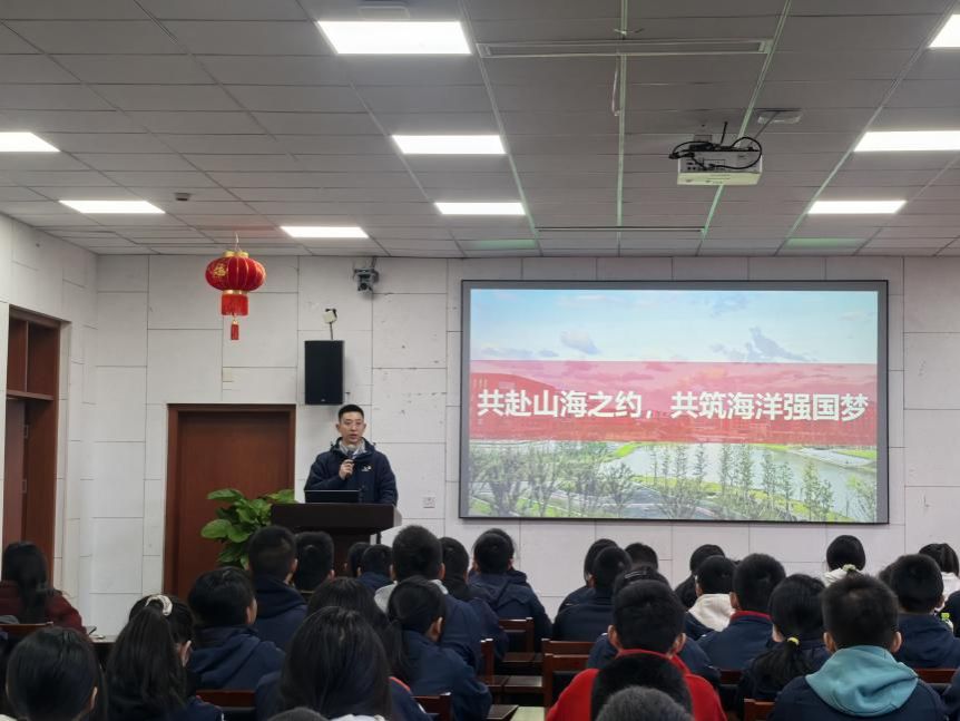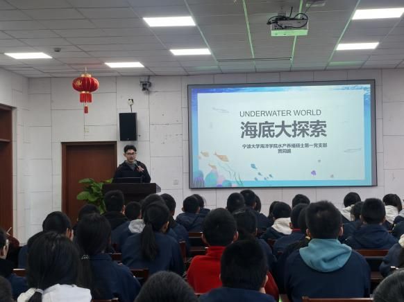 为深入贯彻海洋强国战略,激发青少年对海洋科学的兴趣,推进大中小学思政一体化建设,11月29日,全国百个研究生样板党支部——宁波大学海洋学院水产养殖硕士研究生第一党支部与宁波大学附属春晓实验学校党总支、丽水章旦中学党总支开展“共赴山海之约,共筑海洋强国梦”联合党日活动。宁波大学附属春晓实验学校中学部主任李晓波、学生处主任李泽宇;丽水章旦中学校长夏志平和师生代表共计70余人受邀进校,共同开展思政理论宣讲和海洋科普活动。活动由宁波大学海洋学院水产养殖硕士研究生第一党支部书记、党建辅导员余杰主持。