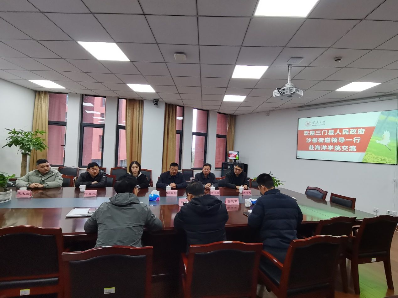 12月11日上午,三门县沙柳街道党工委书记赖智刚一行赴海洋学院交流校地合作事宜。学院副院长母昌考接待了来访客人,交流会由党委委员王亚军主持,地方服务中心主任唐道军参加座谈。