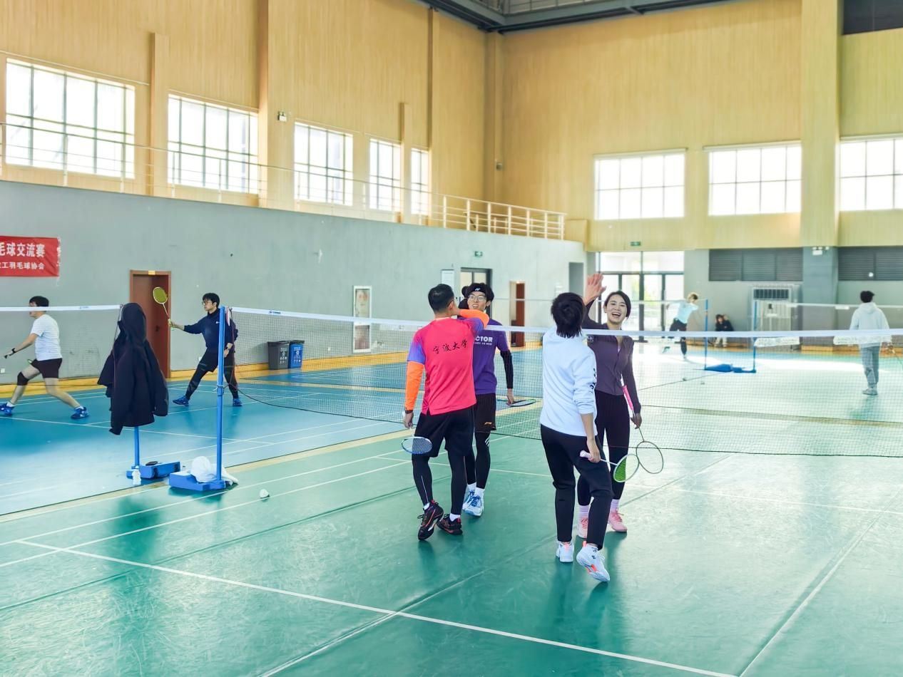 本次活动中,全体成员还在宁波大学忻元甫体育馆开展了一场别开生面的校际羽毛球交流赛,在精心设计的双打赛制中,实现了全体成员的百分百参与。交流赛现场气氛热烈,活动成员在比赛中展现了勇于拼搏、善于协作的精神风貌,在交流中展现了真诚友爱、团结互助的优秀品质,两个团队也展现了齐心协力、迎难而上的奋斗姿态。