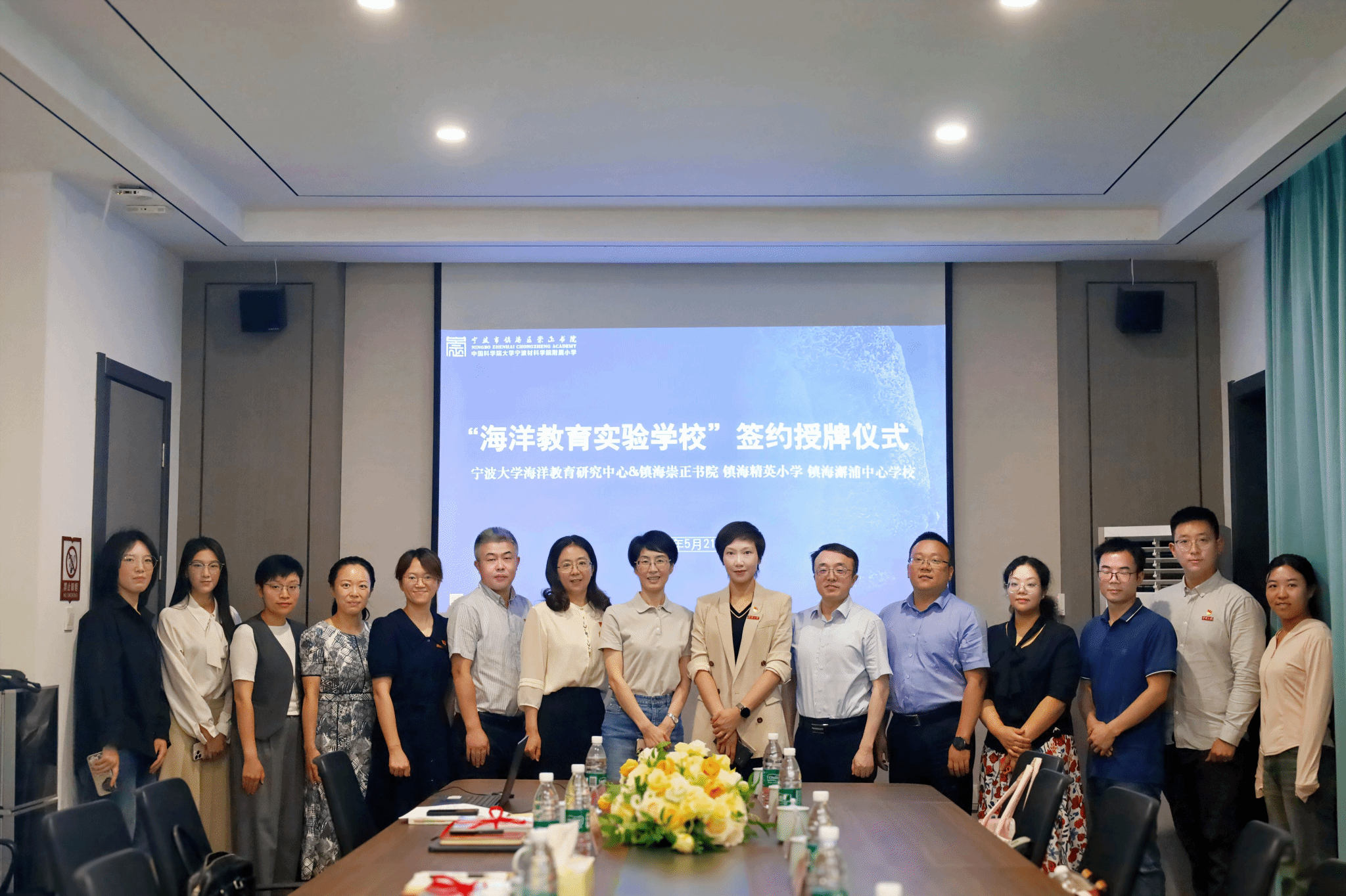 5月21日,宁波大学海洋学院与镇海区崇正书院、精英小学、澥浦中心学校举行党建联建签约暨“海洋教育实验学校”授牌仪式。海洋学院党委书记邵丽、全国海洋教育研究联盟常务副理事长刘训华、镇海区教育局副局长李瑛、联建学校负责人等参加仪式。