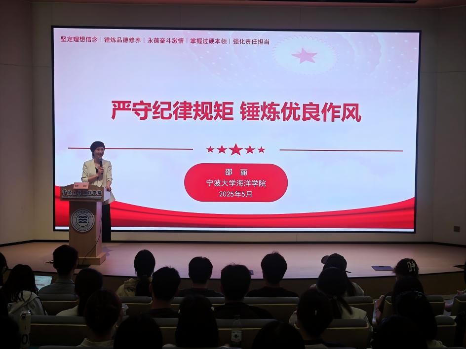 为深入贯彻中央八项规定精神,加强学院党风廉政建设,提升学生党员的纪律意识和作风素养,5月28日,海洋学院于中试基地报告厅成功举办“严守纪律规矩,锤炼优良作风”专题党课。学院党委书记邵丽主讲,各学生党支部书记、分党校预备党员及发展对象参加。