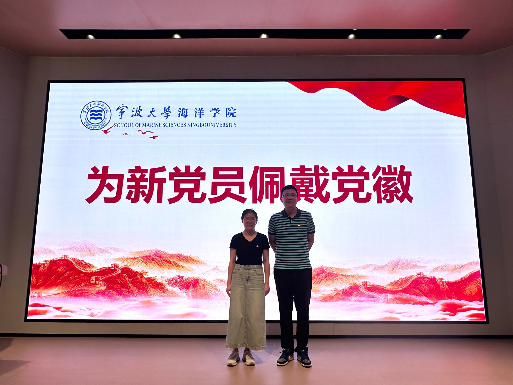 表彰先进树标杆,赓续初心向未来。会议最后举行了荣誉表彰仪式,党委书记邵丽和副书记张乐为荣获2025年宁波大学“两优一先”荣誉的集体与个人颁发了奖牌和荣誉证书。去年发展入党的学院学术副院长王凯在现场为今年新发展的党员舒凤玲佩戴党徽并合照留念,不忘初心,牢记使命,一代代党员为强国事业接续奋斗的精神在这一刻得到具化。