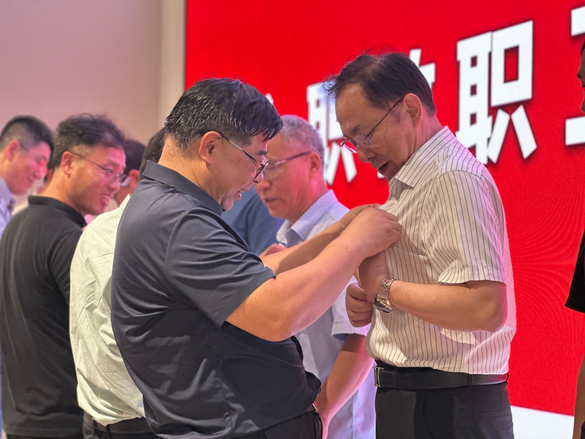 大会伊始隆重举行了新教职工入职仪式。在全场老师的热烈掌声中,八位成果丰硕、德高望重的学术大咖和冲劲十足、未来可期的青年才俊逐一亮相,学院领导班子成员为他们佩戴宁波大学校徽。截至本学期末,海洋学院教职工总数已突破180人,高水平人才队伍得到了进一步壮大。