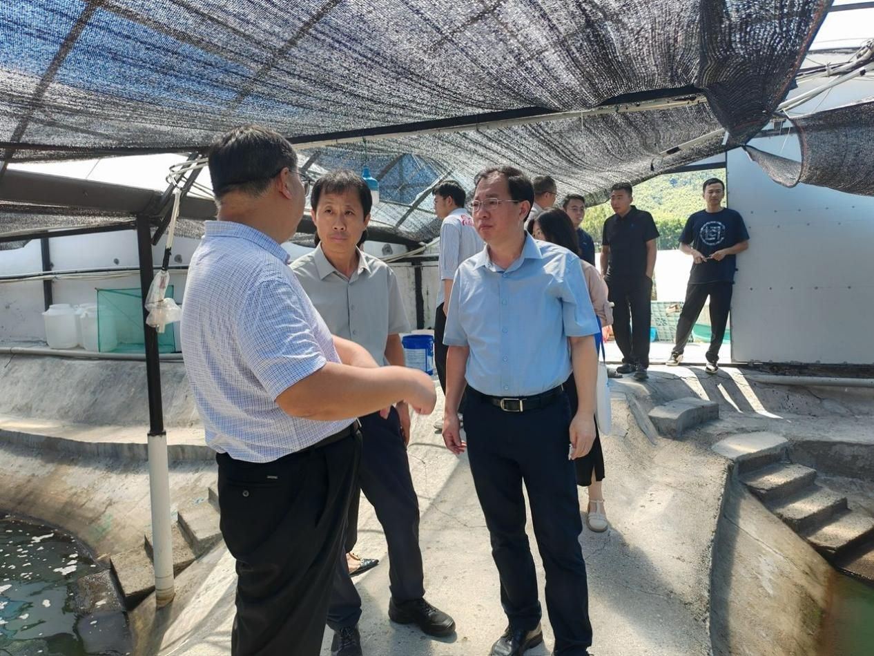 9月16日,山东东营市海洋发展和渔业局党组书记、局长薄纯全,东营市海洋发展研究院副院长李希泉一行调研走访象山(宁波大学)水产种业创新研究院及合作基地。薄局长一行首先来到水产种业创新研究院育苗和养殖车间,实地了解了青蟹苗种培育、日本对虾工厂化养殖、养殖尾水处理,以及象山水产种业的发展情况,对象山县近年来在种业创新和渔业高质量发展的做法表示赞同。种业研究院院长王春琳教授、副院长陈挺、宁波大学海洋学院党委委员王亚军教授等陪同参加调研活动。