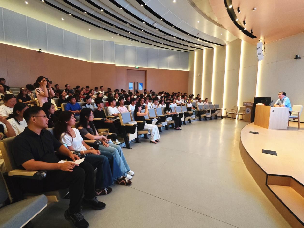 为帮助新生尽快适应大学生活,确立人生目标,做好生涯规划,9月24日下午,浙江天皓控股有限公司董事长黄必胜校友在海洋学院中试基地报告厅为师生带来题为《浅谈跨界的力量:从专业到产业,打破边界、重塑未来》讲座。海洋学院党委副书记张乐、校友联络员曹家旗和25级新生参加,活动由学工办主任王腾飞老师主持。