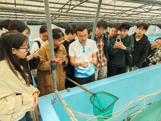 本次校外实践教学邀请象山蓝尚科技有限公司负责人与海大集团资深养殖工程师亲临塘边授课,两位深耕对虾养殖产业多年的专家结合企业技术研发与市场应用经验,围绕对虾绿色养殖的产业现状、技术痛点、发展趋势等内容展开分享。象山蓝尚科技负责人以 “基于下沉式温控大棚南美白对虾可控化高效养殖技术研究与示范” 为主题,通过案例分析详解大棚设施改造、精准投喂、水质调控等技术如何降低养殖风险、提升养殖效益;海大集团养殖工程师则聚焦一线养殖难题,从苗种选择、病害防控、饲料配比等关键环节入手,传授实战经验与应急处理技巧,让学生们直观感受到产业对专业技术的实际需求。郭海朋老师带领学生深入养殖现场,开展从原水消毒、苗种投放、养殖管理到尾水处理的全流程实践教学。学生现场了解不同养殖模式养殖情况,通过亲手检测水质、观察对虾生长状态,将理论知识与产业实践紧密结合。此次校外实践中,学生与专家互动交流热情高涨,纷纷表示:“专家分享的案例都是产业一线正在发生的实际问题,塘边授课实践让抽象的理论变得可感可知,不仅掌握了对虾绿色养殖的核心技术流程,更清晰了专业知识在产业升级中的应用价值,对未来的职业发展和研究方向有了更明确的规划。”