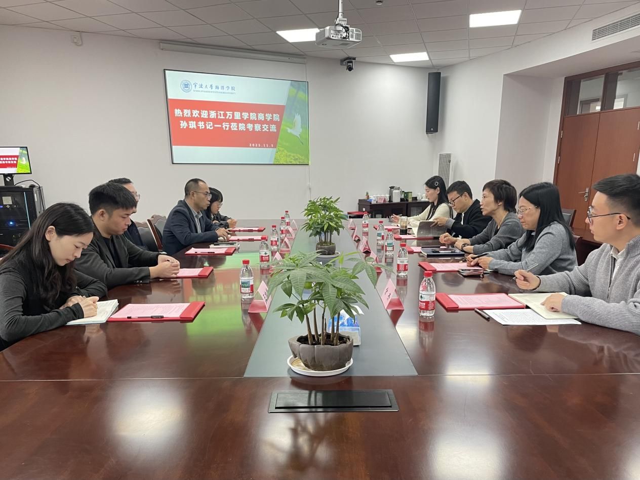 为了加强校际党建工作交流,深化党建“双创”项目建设成效,11月5日,浙江万里学院商学院党委书记孙琪、党委副书记黄文军等一行5人莅临海洋学院开展调研座谈。调研座谈会在海洋学院东楼303会议室举行,学院党委书记邵丽、党委副书记张乐,全国“双创”相关项目党支部书记及专职组织员参加接待并开展交流。