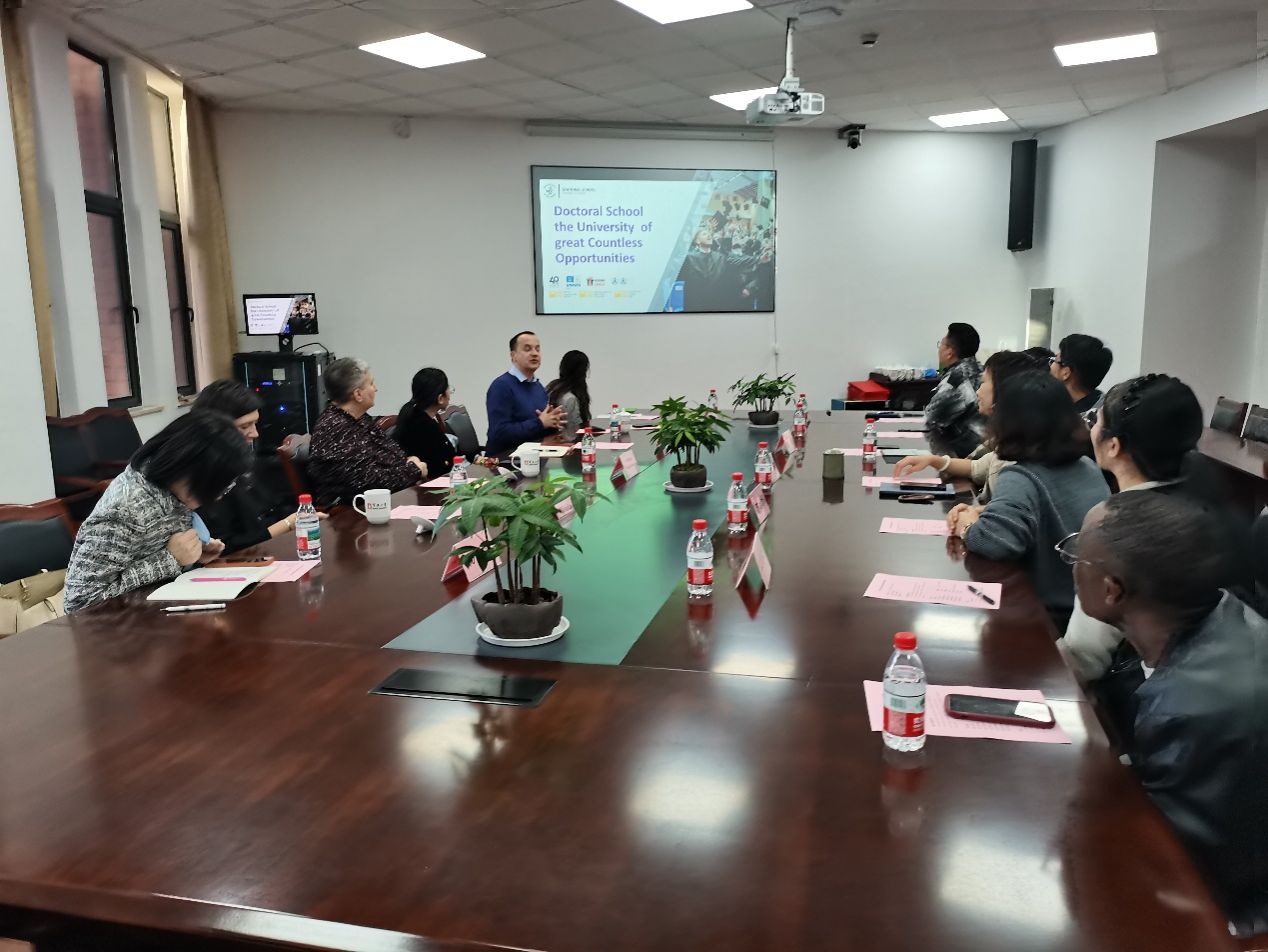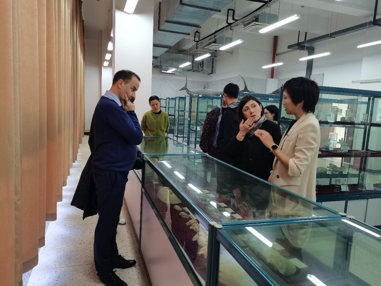 随后,双方在海洋学院东楼 303 会议室举行座谈交流,会议由周洵瑛主持。邵丽代表海洋学院介绍学科布局、师资力量及国际合作现状;生物系主任陈娟娟重点展示了生物学科的发展历程、人才培养及科研成果等;Kinga Flaga-Gieruszyńska 教授介绍什切青大学的办学特色、人才培养及国际交流愿景;Jarosław Korpysa 教授就学校的博士培养体系及国际生项目展开了详细介绍解读。
