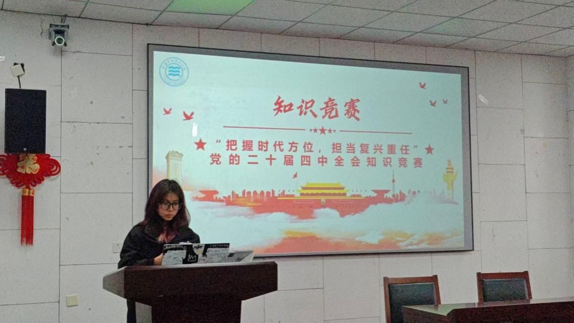 为深入学习贯彻党的二十届四中全会精神,引导广大学生党员深刻把握新时代新征程党的使命任务,激发担当民族复兴大任的自觉性与主动性,2025年11月21日,海洋学院党建中心于海洋东楼107室举办“把握时代方位,担当复兴重任”学习党的二十届四中全会精神知识竞赛。本次活动吸引了学院本科生、硕士、博士党支部的党员代表踊跃参加。