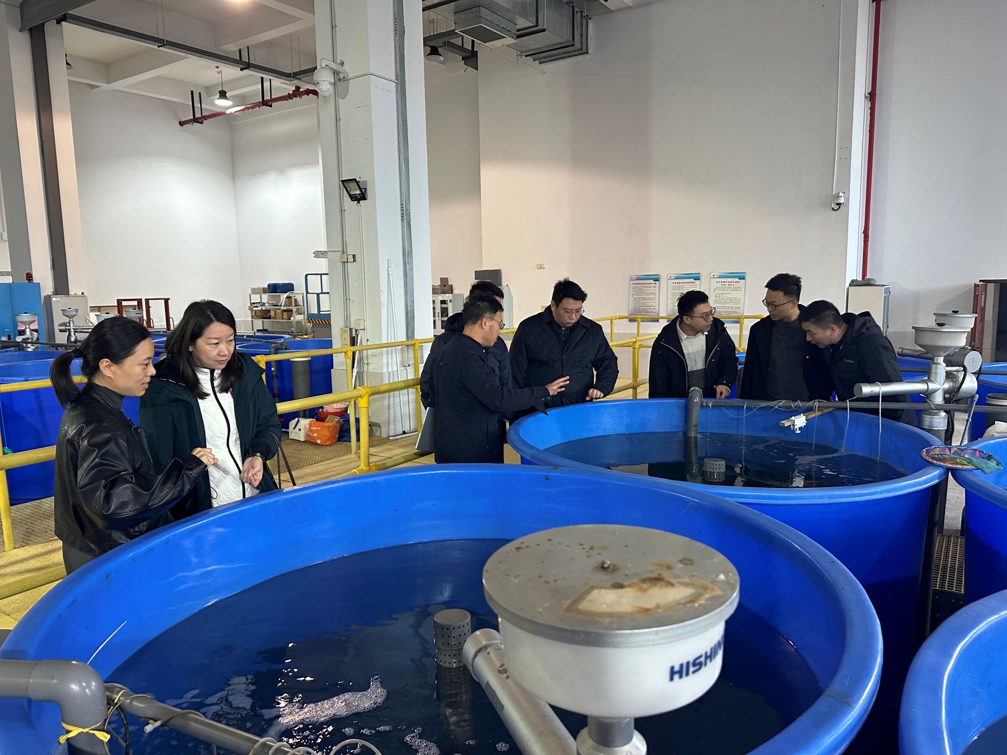 下午,沿海集团一行在海洋学院相关负责人陪同下,前往象山港湾水产育苗场和象山(宁波大学)水产种业创新研究院进行了实地考察。
