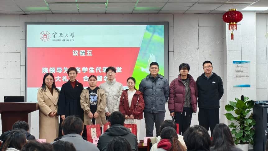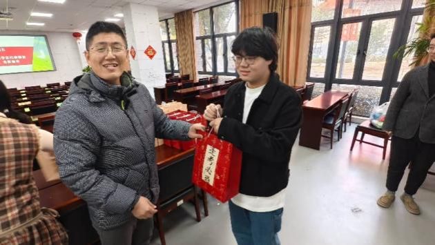 与会师生在东楼外合影留念环节,定格这份逐梦时光里的温暖与力量!合影结束后,学院为到场的每一位考研学子发放加油礼包,将大会推向暖心高潮。