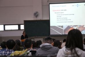 24日下午2时,西班牙加泰罗尼亚理工大学(UPC)农学院Lourdes Reig Puig教授在梅山校区国际楼301报告厅为我院师生进行了关于水产养殖技术和技术转化的讲座。