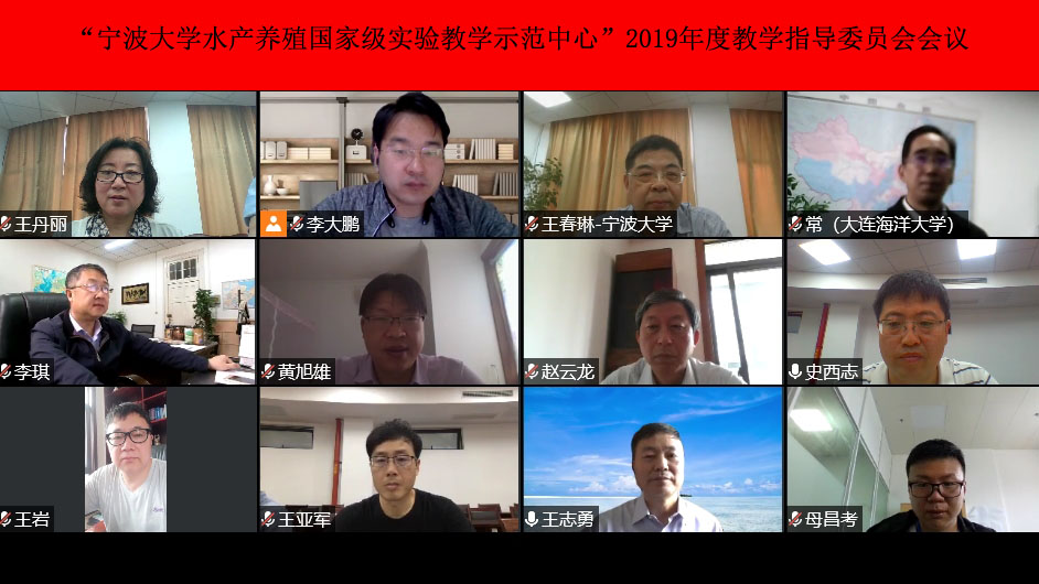 2020年5月15日,“宁波大学水产养殖国家级实验教学示范中心”2019年度教学指导委员会会议在海洋学院举行。由于受疫情影响,本次会议采用网络视频形式举行。会议分别由海洋学院分管教学副院长史西志和教学指导委员会主任李琪教授主持,7位校外教学指导委员会委员及海洋学院水产专业和实验教学示范中心相关教师出席了会议。