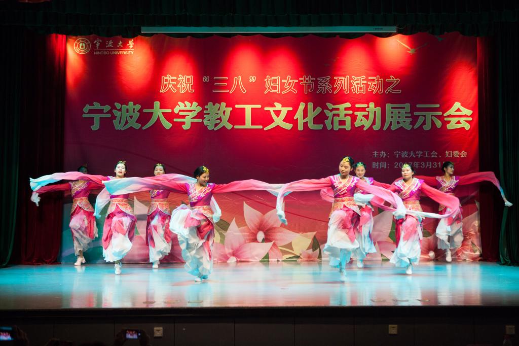 为庆祝国际三八妇女节,倡导健康生活理念,2017年3月31日下午,由宁波大学校工会、校妇委会主办的教职工文化活动展示在锦绣小剧场举行。