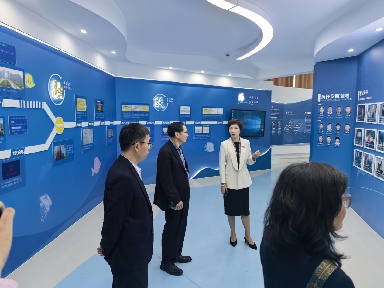 为让学术专家深入了解学院在党支部引领下的发展成果,本次参观交流环节由教师党支部精心统筹,在邵丽书记及支部党员代表陪同下,周集中院士首先参观了学院院史馆与中试基地。通过讲解与展示,周院士深入了解了海洋学院的发展历程、学科建设成就与人才培养体系,对学院近年来以党建为引领、以科研促发展的理念与成效表示充分肯定。在中试基地考察中,周院士重点参观了智慧水产养殖系统,并就系统中的微生物管理与生态调控问题与教师代表进行了交流。他对学院科研条件、技术平台及产学研融合情况给予了高度评价,认为海洋科技创新是推动可持续发展的重要方向,对宁波大学在该领域的探索与成果表示赞赏。