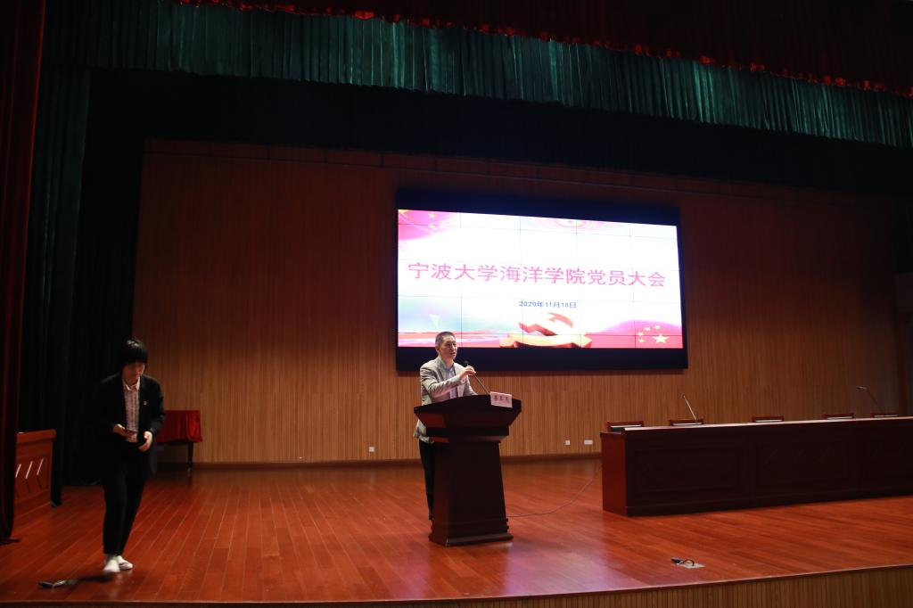为有序开展中共宁波大学第四次党代会代表的选举工作,中共宁波大学海洋学院委员会于2020年11月18日下午在梅山校区行政楼大会堂召开党员大会。本次大会由学院党委书记蔡真亮同志主持。