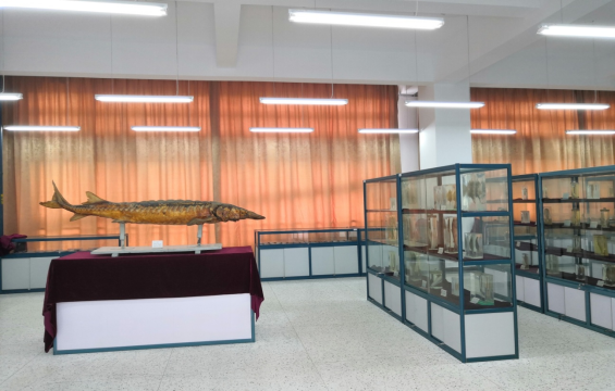 宁波大学海洋生物陈列馆现位于宁波大学梅山校区中试基地水族馆楼内,其海洋生物标本馆建筑面积约1300㎡,使用面积约800㎡,展厅500㎡,标本储藏室200㎡;并配有150㎡的映像室。标本馆内共展出1000多种海洋生物,其中鱼类展区有标本300多种,有珍贵标本中华鲟等;