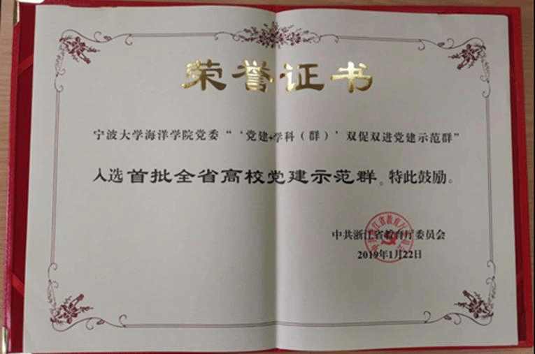 2019年,海洋学院党委入选浙江省首批高校党建示范群