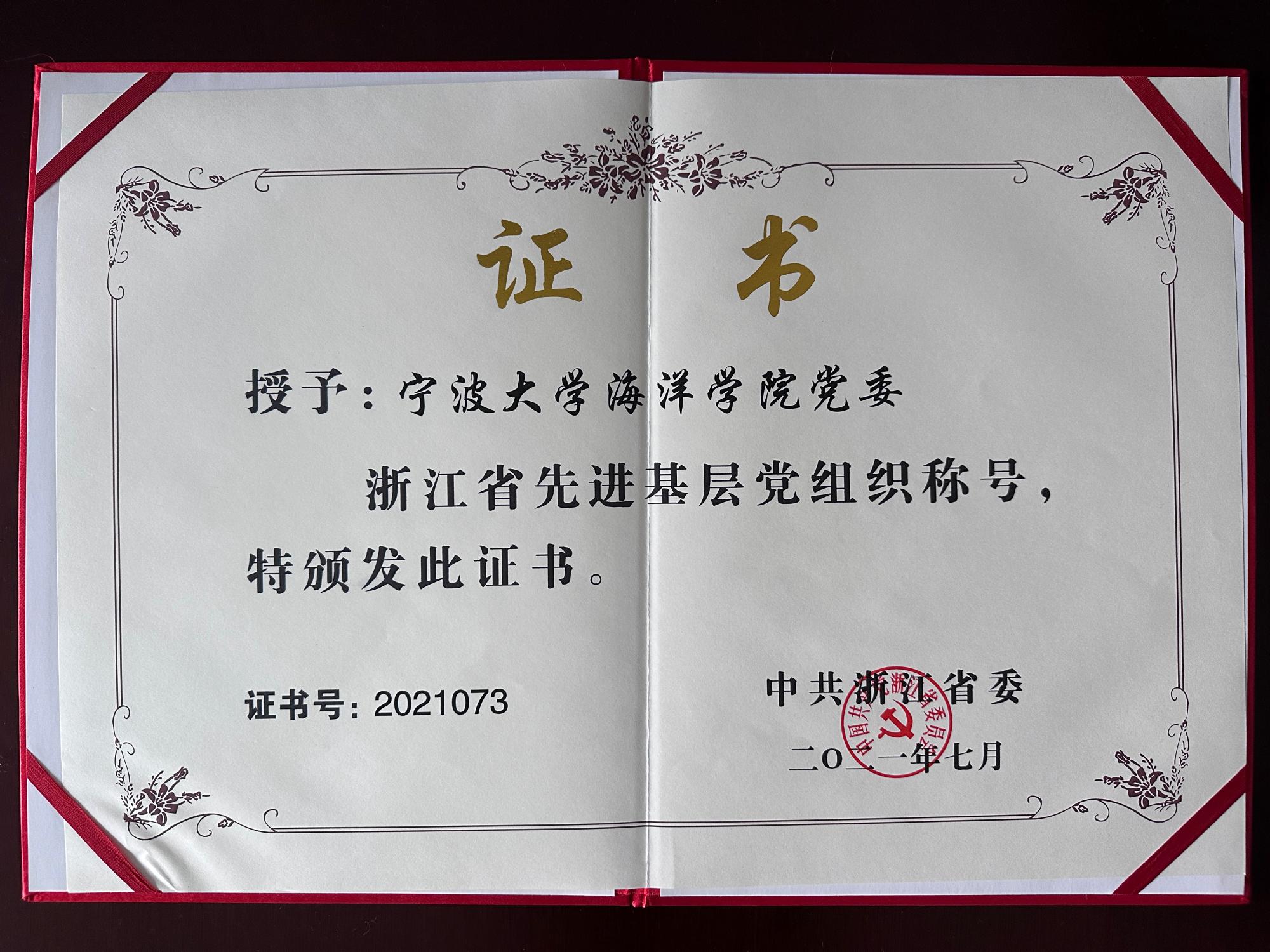 2021年7月1日,学院党委获浙江省先进基层党组织荣誉称号